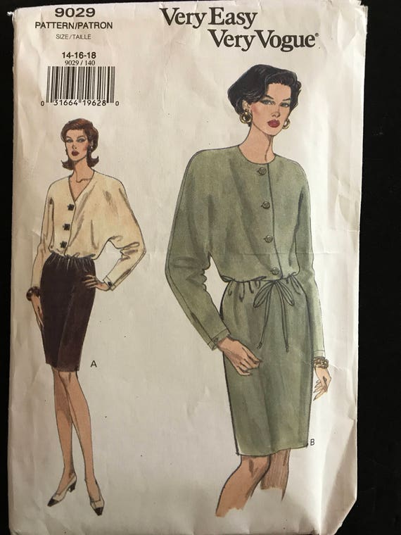 Vogue 9029 Pattern Button Front Dress Knee Length Blouson Etsy